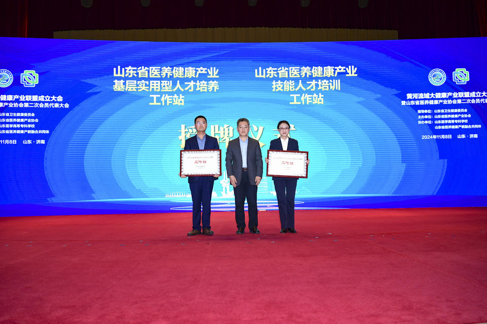 山东省卫生健康委员会党组成员、副主任,省中医药管理局副局长李明为山东省医养健康产业技能人才工作站和基层实用性人才培养工作站授牌