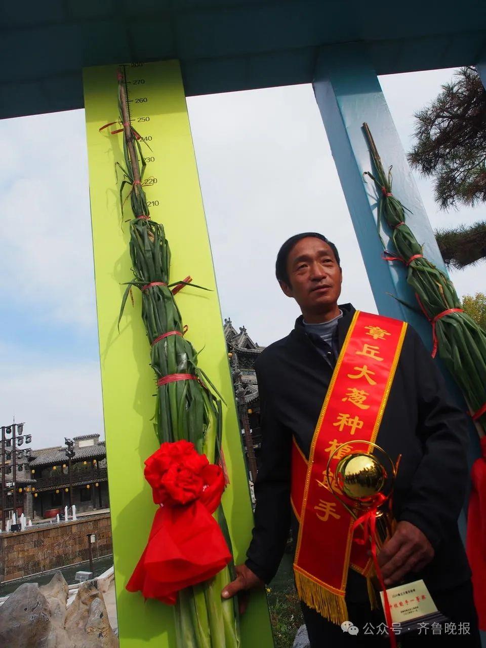 绣惠街道王金村大葱种植户苗发勇种植的大葱荣获“葱王”称号,以2.68米摘得2024年章丘“葱王”桂冠,超过了往年的大葱最高纪录。