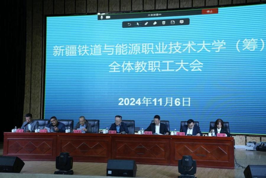 11月6日,新疆铁道与能源职业技术大学(筹)全体教职工大会胜利召开。会上,临时校务委员会副主任王瑞生作新疆铁道与能源职业技术大学(筹)本科创建情况工作汇报。