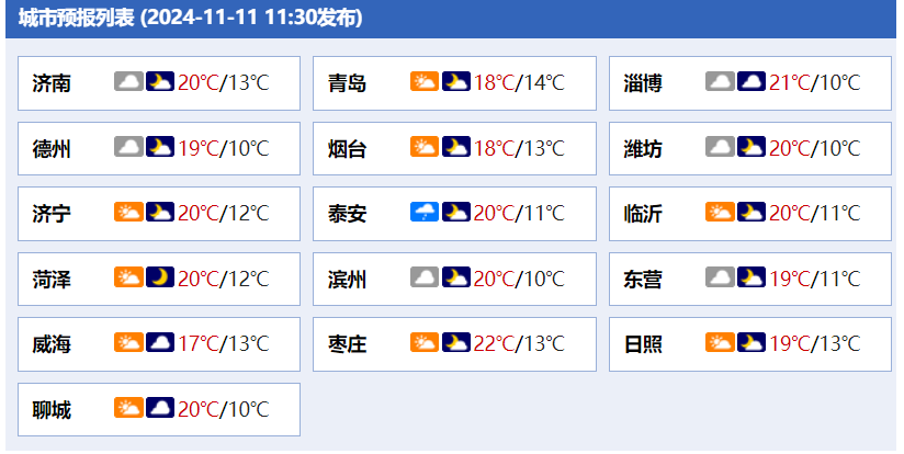 最高气温:鲁中山区和半岛地区18℃左右,其他地区20℃左右。