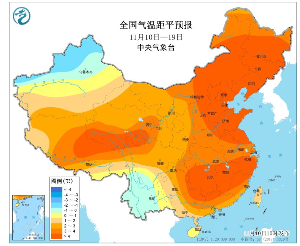 根据中央气象台11月10日最新发布的中长期天气预报,未来十天全国大部地区气温偏高。从11月10日至19日的全国气温距平预报来看,山东大部地区气温较常年同期偏高4℃以上。