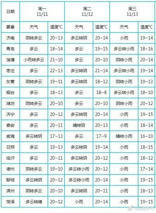 12日夜间到13日白天,全省天气多云转阴,鲁西北、鲁中和鲁南地区局部有小雨。北风转南风,半岛地区3~4级,其他地区2~3级。