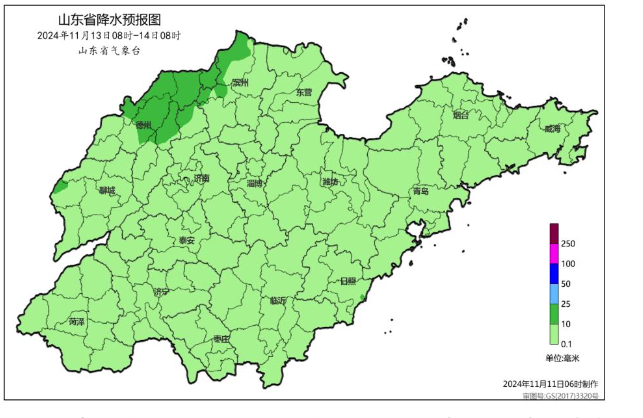 11月4日至6日,山东经历今年下半年首次寒潮天气过程,多地最低气温降至0—4℃,此后,全省天气逐渐回暖,体感上较常年同期偏高。