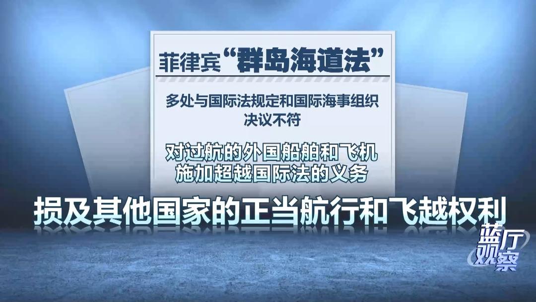首先来看所谓“海洋区域法”,它将中国黄岩岛和南沙群岛大部分岛礁及相关海域非法纳入菲方海洋区域,这是妄图以国内立法形式固化南海仲裁案非法裁决。