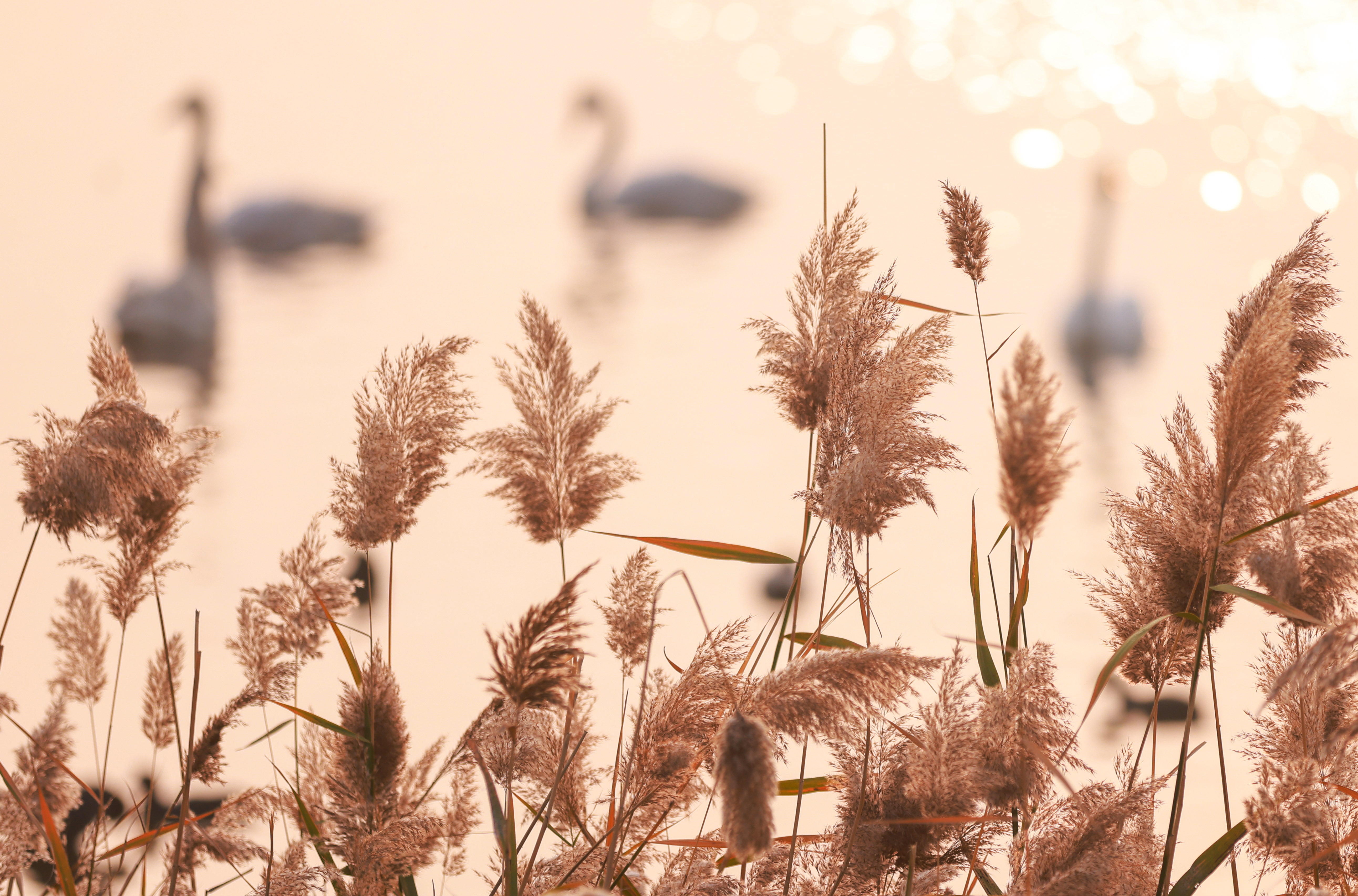 金黄色的芦苇迎风摇曳,野鸭等各种野生鸟类在此栖息,美丽的景色吸引众多市民前来观光游玩。