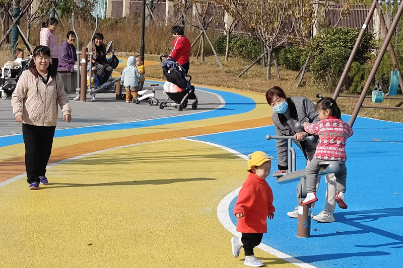 蔚海新天地口袋公园位于蔚海新天地北区入口附近。该公园利用原有绿化带,在靠近幼儿园区域,打造儿童游乐空间,并增加各类儿童游乐设施。同时新修建健身步道、休闲小广场,安装健身器材、棋牌桌、休闲桌椅等,打造全龄友好口袋公园。目前已完成硬化基础施工,苗木栽植即将完成。