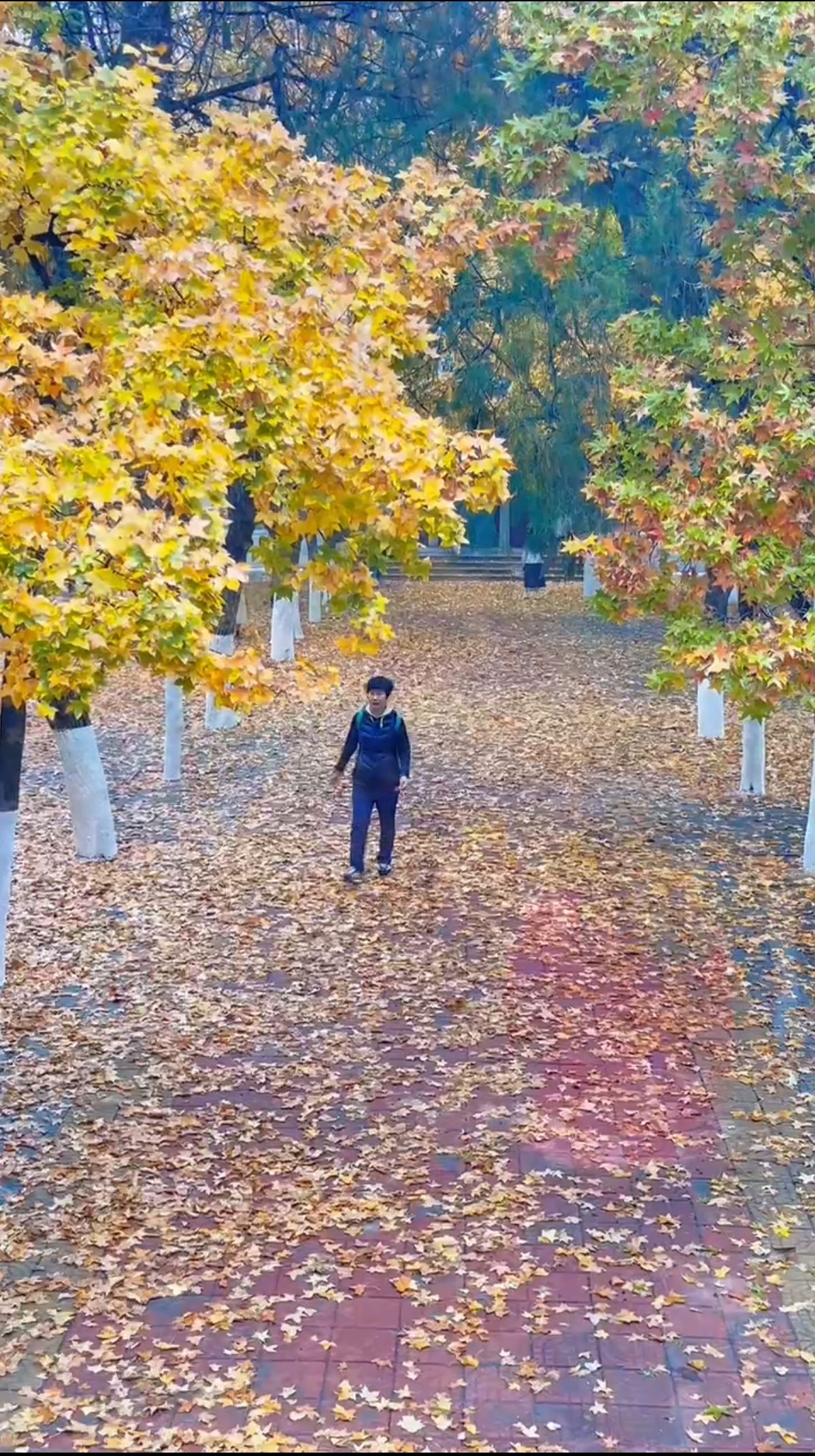 初冬的美,满地的落叶最先感知。公园石阶、墙院路面都铺满了一地暖黄,缓缓踏过,轻盈松软,如若还有余晖映照,静谧中便透出令人陶醉的光芒,宛若散发着记忆的余温,给清冽的冬日平添了一抹安宁。