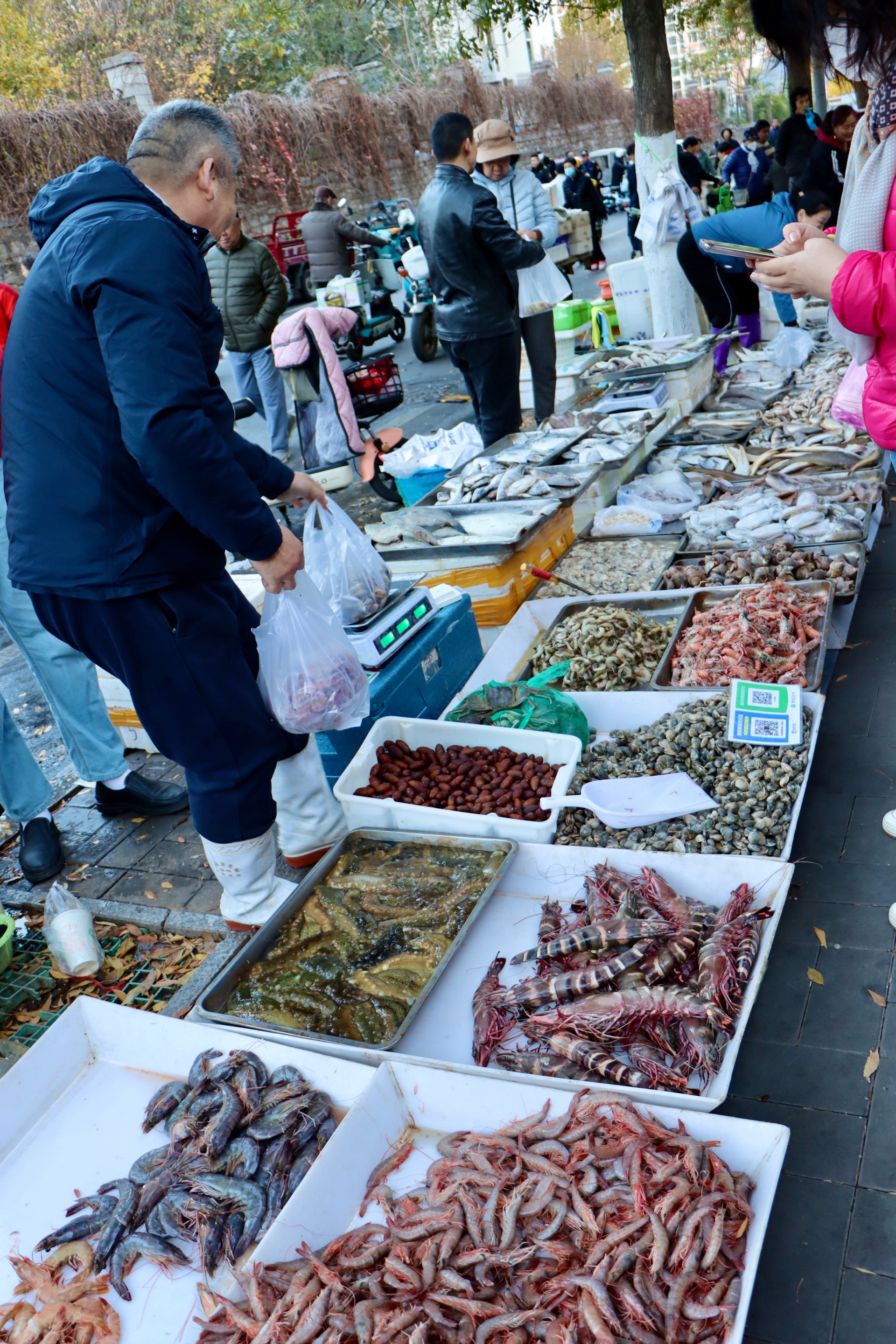 11月17日,天刚蒙蒙亮,济南荆山路南侧的街巷里便热闹起来。人行道边,热腾腾的豆腐脑、油条,远道而来的海鲜,五颜六色的水果和蔬菜等满满荡荡,从周边小区甚至南部山区起早赶来的居民络绎不绝。曾几何时,这里还是一处不起眼的农贸市场,随着城市建设飞速发展,几经辗转,它安家在高楼林立的黄金路段,成为这座都市里最具人间烟火气的角落。