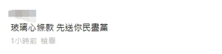 还有人讽刺称,“玻璃心条款,先送你民进党。”