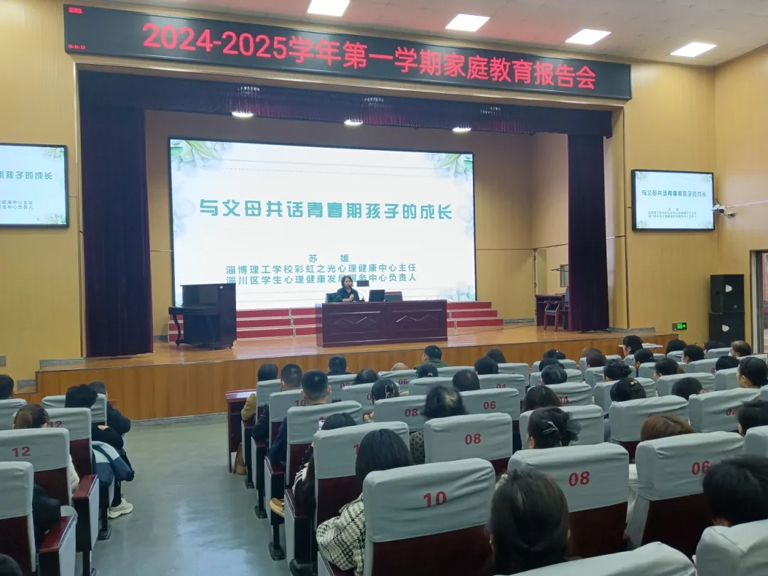 鲁中网淄博11月18日讯(记者 徐梦迪 通讯员 李森)为更好地开展教育开放月活动,构建和谐的家校关系,为学生提供更好的成长环境,11月15日下午,淄川第二中学邀请淄博理工学校彩虹之光心理健康中心主任、淄川区学生心理健康发展服务中心负责人苏媛,在学校学术报告厅作“与父母共话青春期孩子的成长”家庭教育报告会。