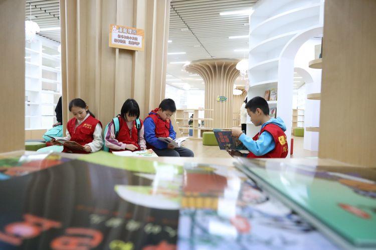 小记者正在淄博市妇女儿童活动中心看书。