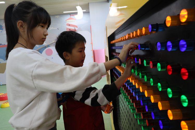 二楼的活动体验场馆更是让小记者们大开眼界。这里根据儿童年龄、成长发育及认知特点划分为6个区域,免费向0-12岁儿童开放。儿童观影区、敞开式儿童搭建乐园、儿童科普乐园和儿童运动乐园各具特色,让小记者们在游玩中增长了知识,锻炼了能力。