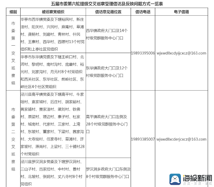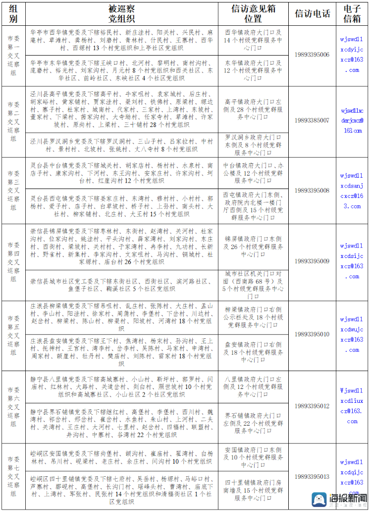 记者注意到,文章还附上了五届市委第六轮常规巡察受理信访及反映问题方式一览表,以及提级交叉巡察受理信访及反映问题方式一览表,共包括3个巡察组及7个交叉巡察组,每组除公布了信访电话外,还分别公布了电子邮箱。