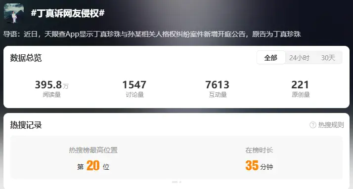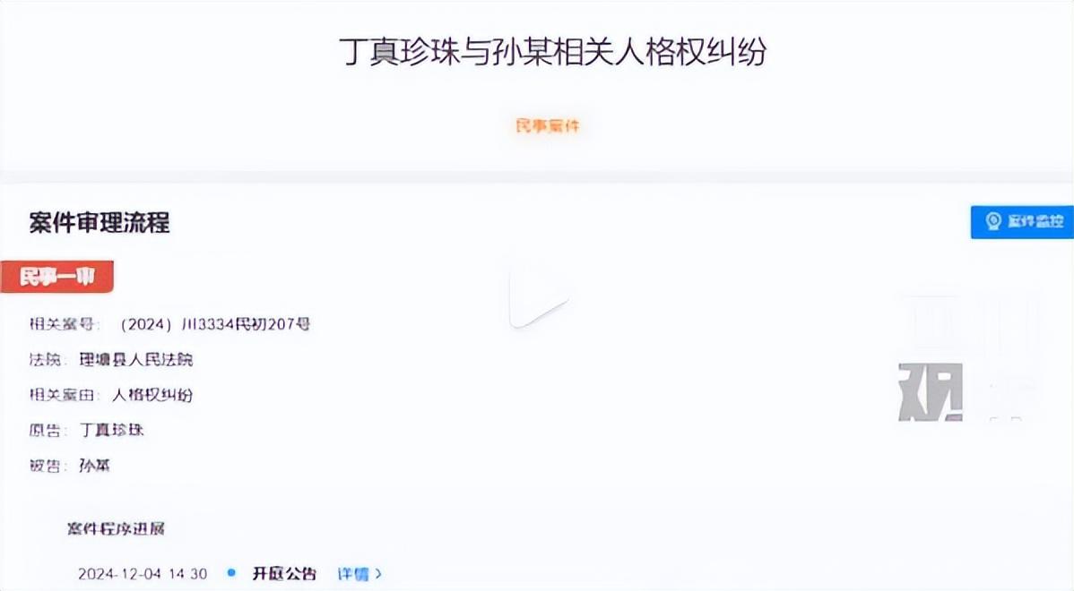 据悉,近日,天眼查App显示,丁真珍珠与孙某相关人格权纠纷案件新增开庭公告,原告为丁真珍珠,该案将于12月4日在理塘县人民法院开庭审理。