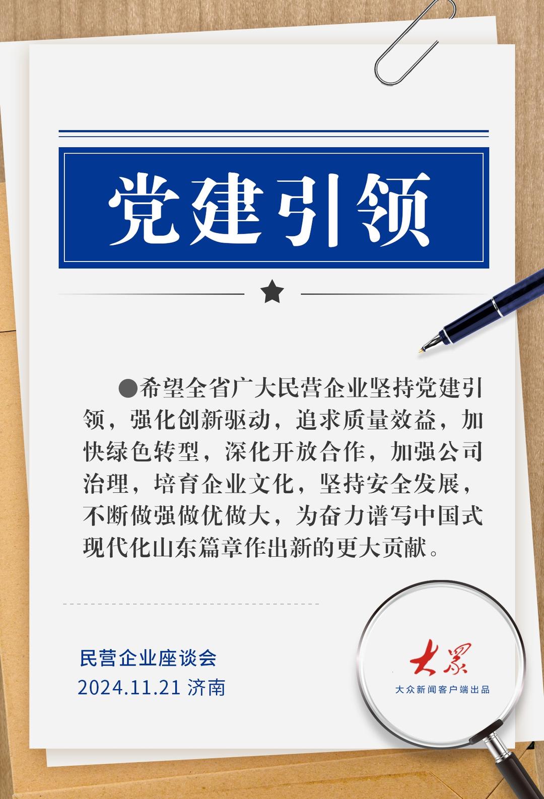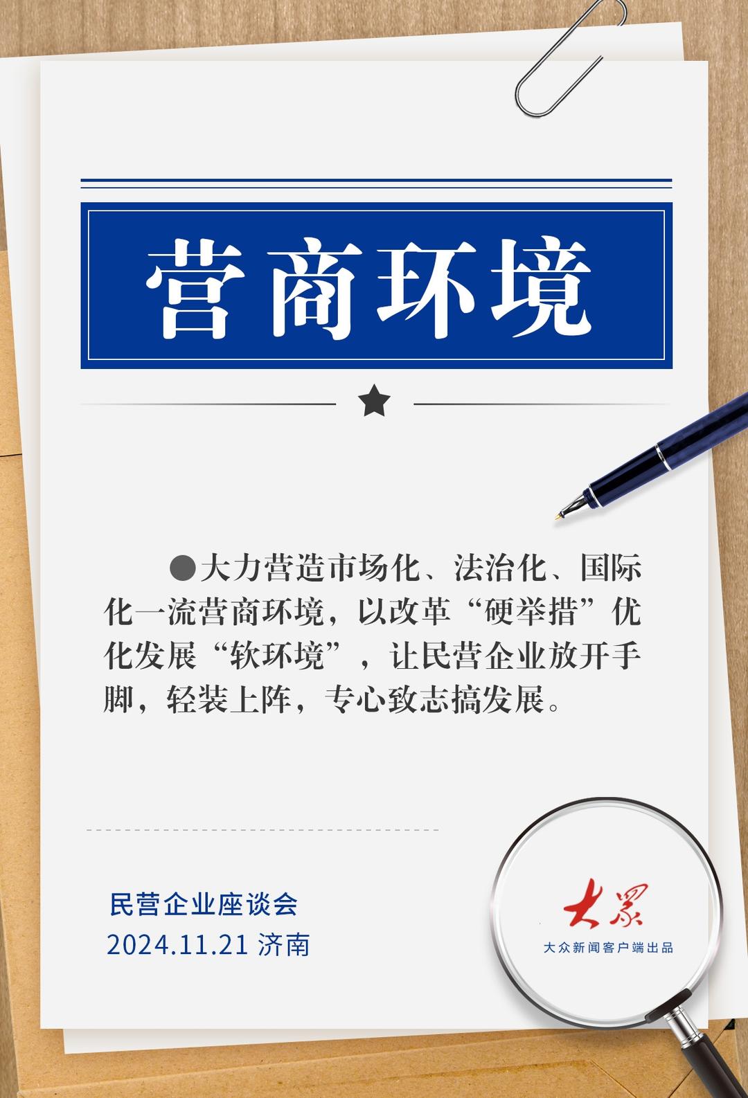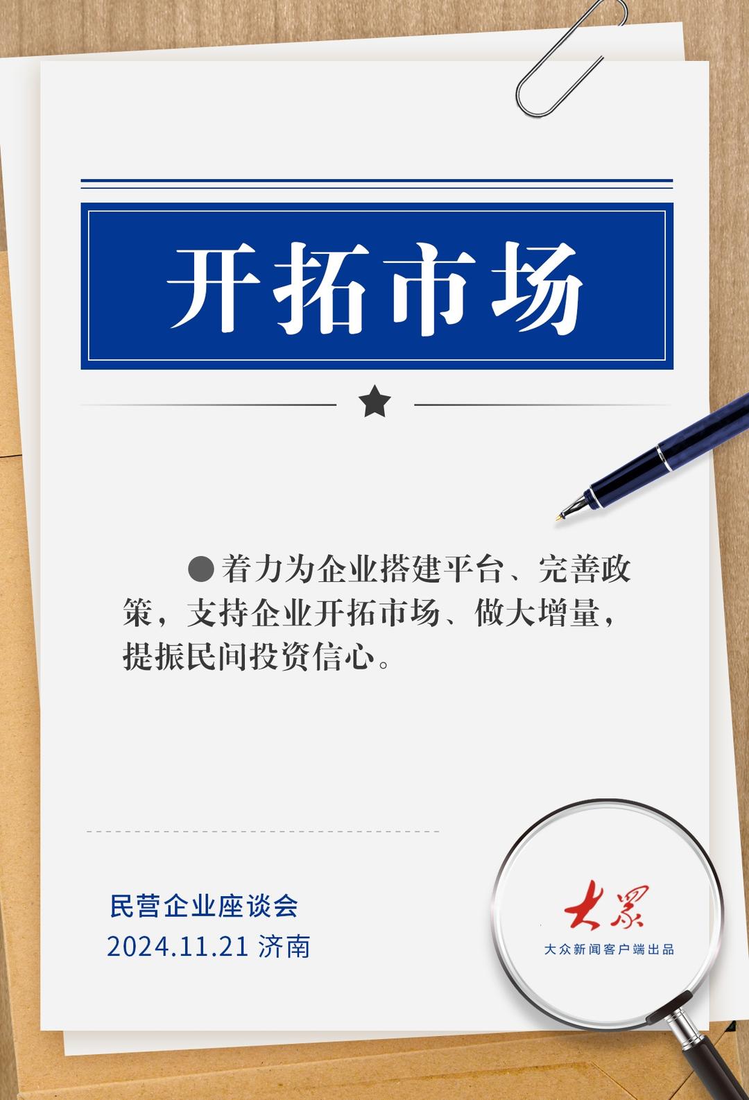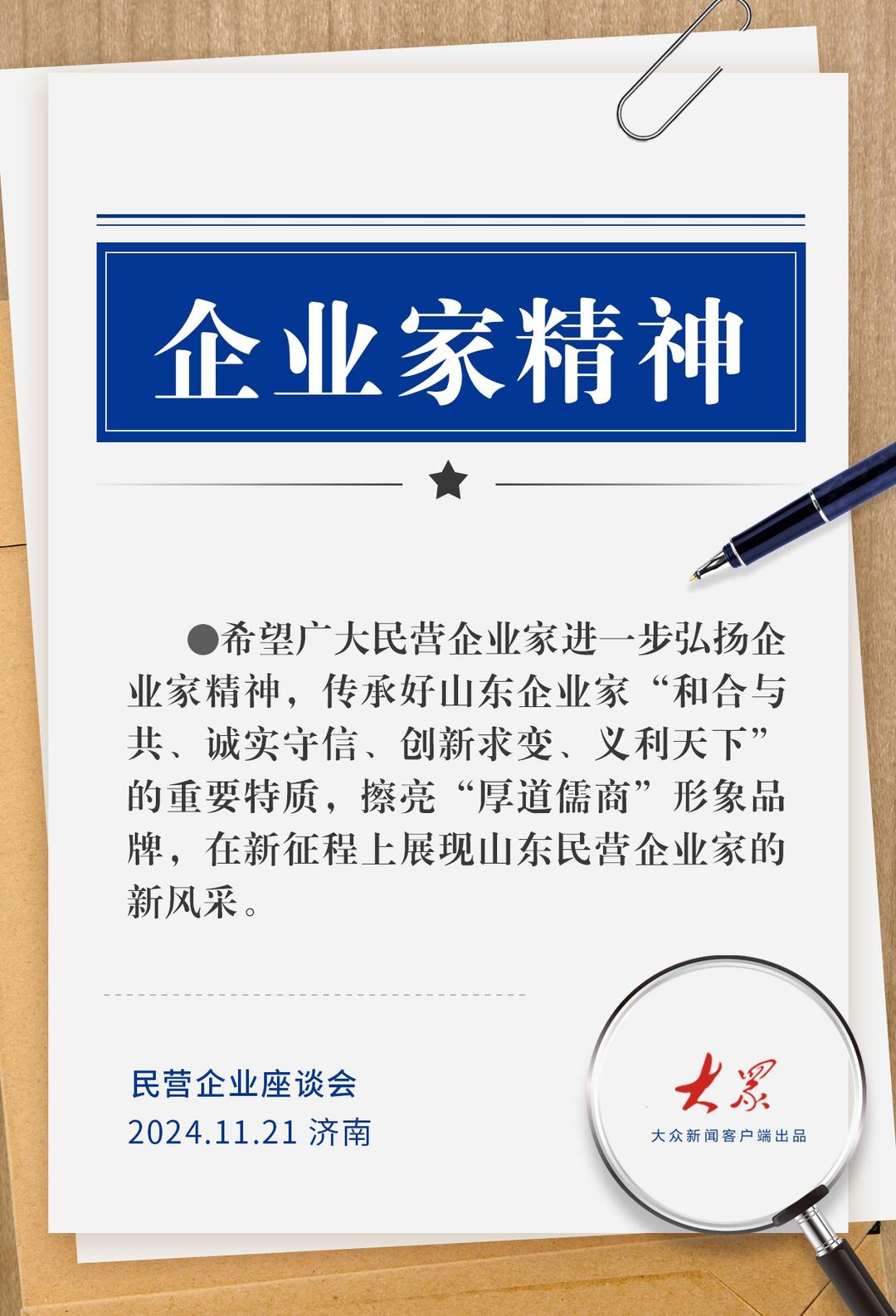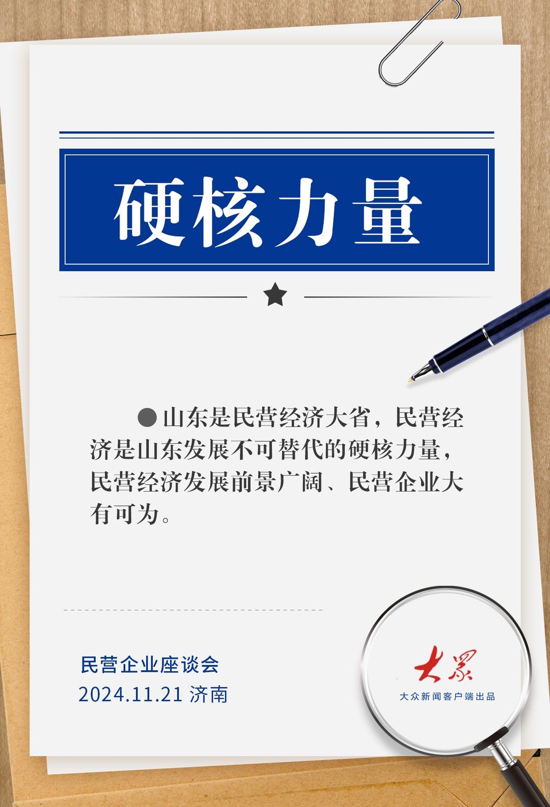 11月21日,省委、省政府在济南召开民营企业座谈会。在全省上下全力推动高质量发展、努力实现全年目标任务的关键时刻,召开这次民营企业座谈会,具有十分重要的意义。座谈会释放的重要信号,让民营企业家信心倍增。