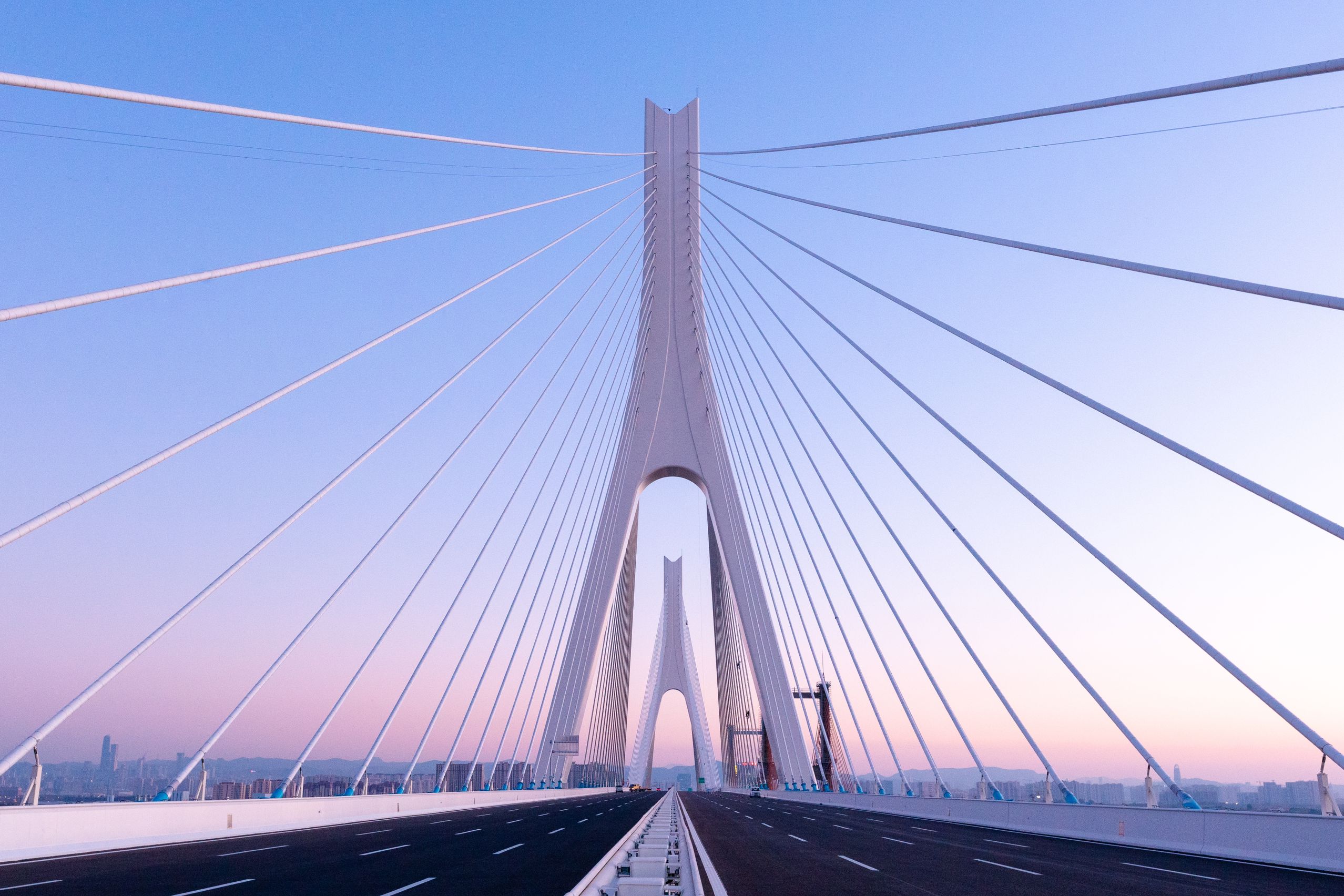项目推进中研发了超宽组合梁断面、智能化无人值守顶推技术、高疲劳性能拉索体系等创新技术,采用标准化设计、工厂化制造、装配化施工。大桥采用钢桥面+UHPC超高性能混凝土组合,大幅提高了钢杯面的抗疲劳寿命;斜拉索采用1860MPa环氧涂层钢纹线,具有独特的四层保护措施,耐久性好,使用寿命长。