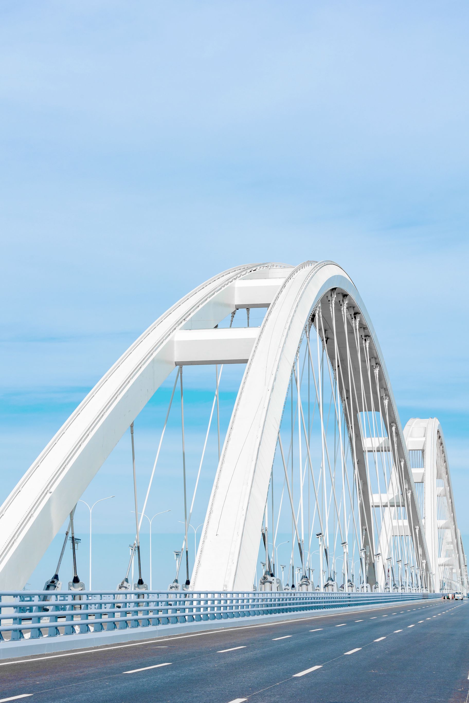 大桥桥塔整体造型源于“水滴”曲线线条,刚柔相济,轻盈通透,使桥梁与环境更有效的融合,也寓意着水文化对于济南这座城市的特殊意义,象牙白桥塔搭配水蓝色钢桁梁,则与泉水遥相呼应相得益彰。