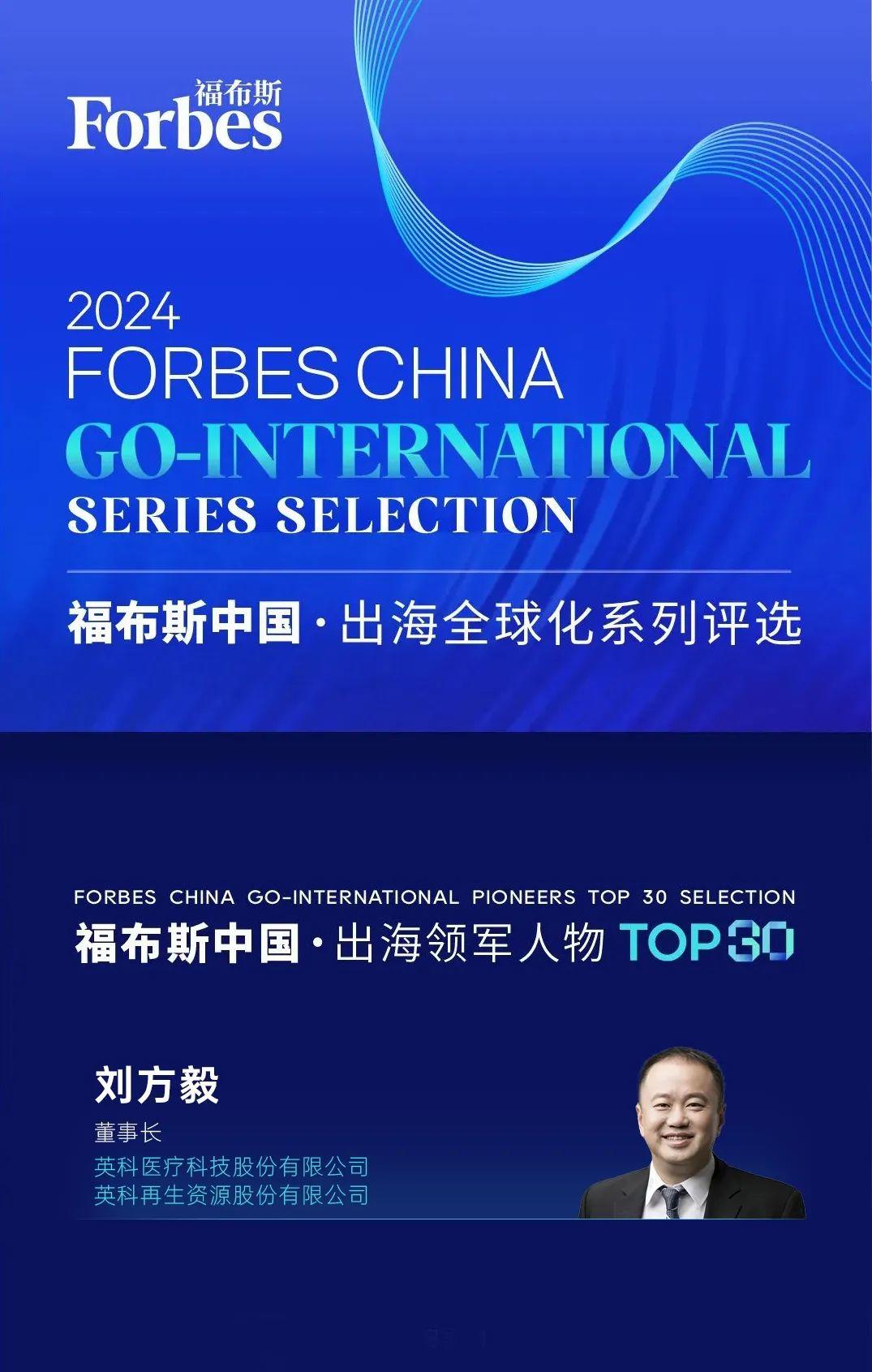 近日,2024福布斯中国·出海全球化30&30系列榜单揭晓,英科医疗、英科再生董事长刘方毅入选“2024福布斯中国·出海领军人物TOP30”。这一荣誉不仅是对刘方毅在全球化商业领域杰出贡献的认可,更是对英科医疗、英科再生分别在全球医用耗材和器械行业、资源循环再生利用行业中领先地位的肯定。