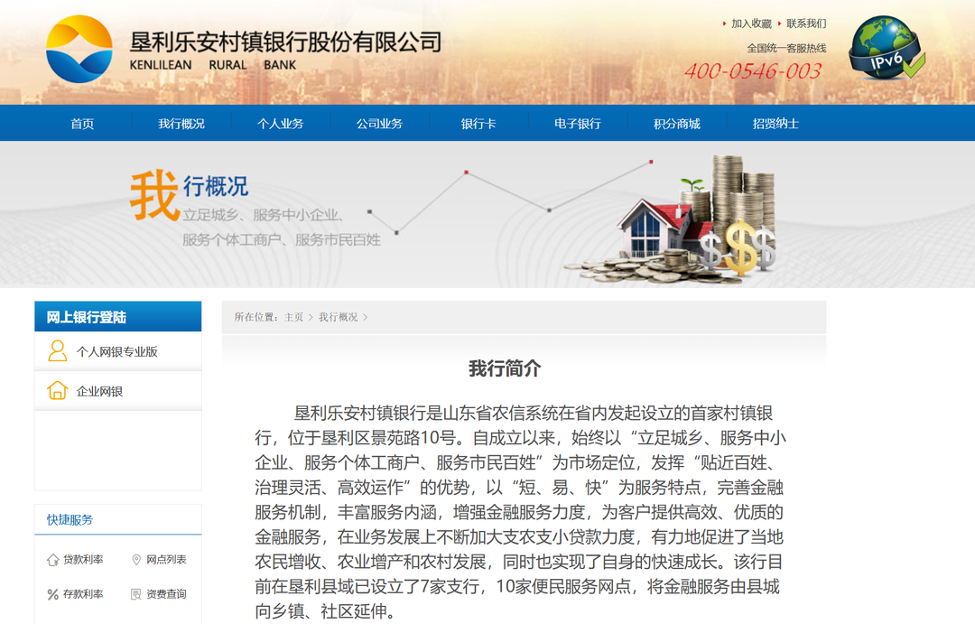 垦利乐安村镇银行官网显示,其是山东省农信系统在省内发起设立的首家村镇银行,位于山东省东营市垦利区景苑路10号。该行目前在垦利县域已设立了7家支行,10家便民服务网点,将金融服务由县城向乡镇、社区延伸。