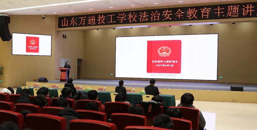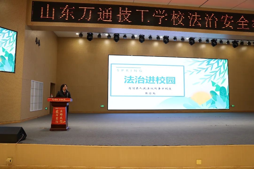 为进一步加强对未成年人的法治宣传力度,提升学生的法律意识和自我保护意识,营造良好的校园法治环境,11月27日,商河县人民法院刑事审判庭联合家庭审判庭、审判管理办公室、玉皇庙人民法庭走进山东万通技工学校,开展“法治进校园”普法宣讲活动。