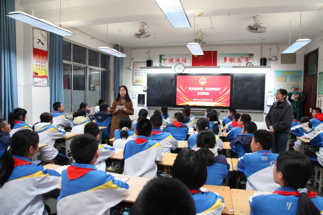 为加强对青少年的宪法教育,活动中还开展了“宪法进校园 法治伴成长”主题班会。11月25日,泰安市人大常委会机关工作人员化身“宪法讲师”,走进泰山学院附属中学为学生们讲解宪法知识。课堂上,工作人员通过列举贴近学生生活的实际案例,将宪法条文转化为易于理解的知识点,让学生们对宪法有了更深刻的认识。活动还特别设置了“宪法知识小课堂”互动竞答环节,学生们在轻松愉快的氛围中,争相抢答问题,加深了对宪法知识的理解和记忆。为了让学生们更加积极地参与到宪法学习中来,工作人员向学生们赠送了宪法读本,并带领学生们一起诵读宪法宣誓誓词,激励他们始终牢记宪法誓言,用实际行动践行法治精神。