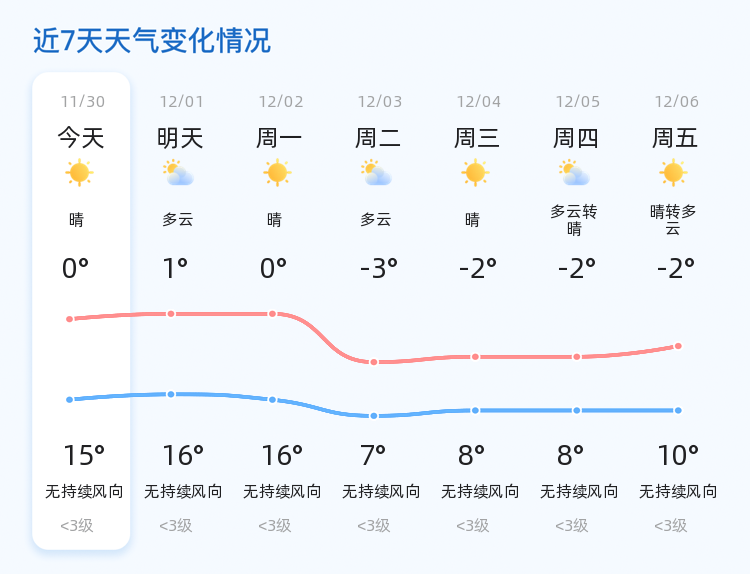 展望未来三天,淄博的天气将呈现出多变的趋势。12月2日,淄博将继续维持晴朗天气,气温变化不大;但到了12月3日,受冷空气影响,淄博将转为多云天气,最低气温将骤降至-3℃,最高气温也仅有7℃,市民需做好防寒保暖准备。12月4日,淄博将再次迎来晴朗天气,但气温依然较低,市民出行时需注意添衣保暖,以防感冒。