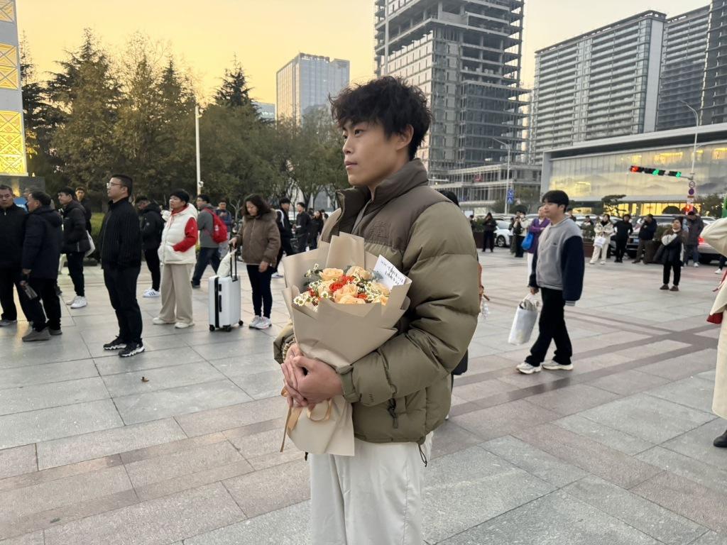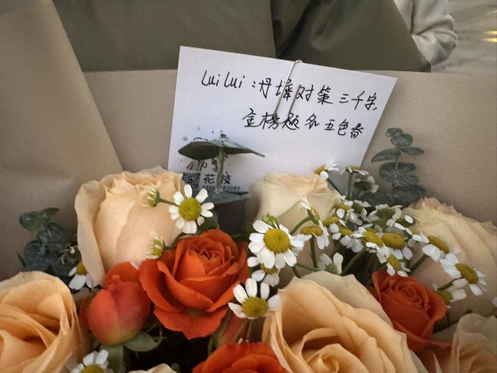 手捧鲜花手写祝福,考场外“亲友团”很给力