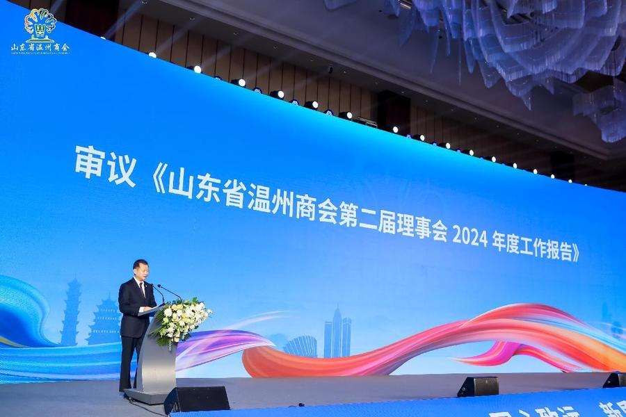 山东省温州商会会长陆建林代表商会第二届理事会向大会作2024年度工作报告。山东省温州商会团结省域16地市温州商会和全体会员,赓续“四千精神”,凝聚奋进力量,敢为人先、创业创新,奋发有为、争创一流,为助推鲁温两地新时代现代化强省市建设和高质量发展作出了重要贡献!商会将以本次会员代表大会为新的起点,始终加强政治引领,服务中心大局,加强全面建设,致力创业创新,做好“四个典范”,为推进鲁温两地新时代现代化建设再立新功、再创辉煌!