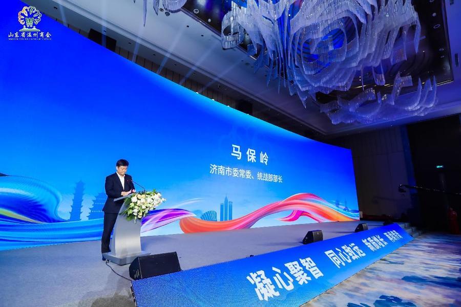 济南市委常委、统战部部长马保岭在讲话中对山东省温州商会的建设成绩给予高度评价。他希望山东省会州商会继续发挥好桥梁纽带作用,积极牵线搭桥,推动温州、济南互动交流,引领更多温商企业家了解济南、投资济南。济南市将全要素提供保障,优化一流营商环境,支持和服务民营企业发展。希望山东省温州商会,进一步完善职能作用,有效承担起政治引导、经济服务、诉求反映、权益维护、诚信自律,协同参与社会治理的任务,更好地发挥商会在民营经济统战工作和经济社会发展中的重要作用。