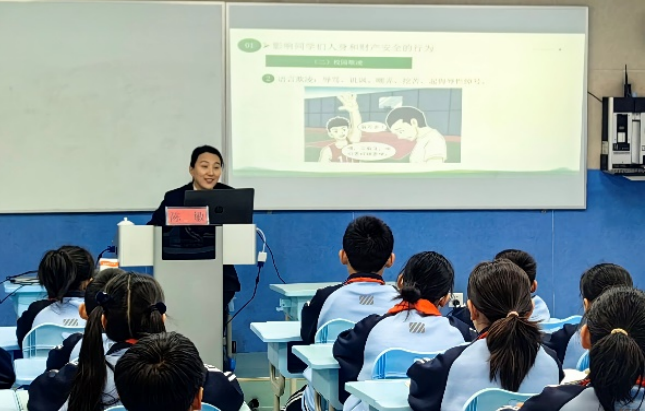 之后,陈敏围绕影响同学们人身和财产安全的行为、违法行为的后果、未成年人如何增强自我保护意识三个方面,结合法律法规和发生在学校内外的真实案例,通俗易懂、深入浅出地讲解了相关法律知识,为同学们上了一堂精彩、生动的法治课,从而进一步增强同学们的自我防范意识和自我保护意识。