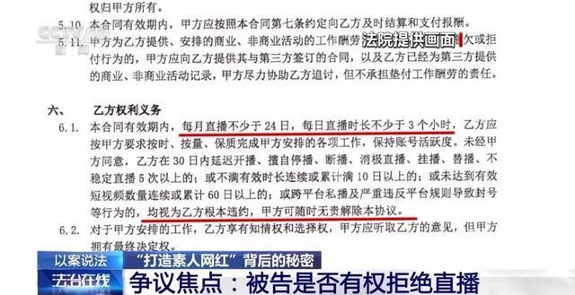 中国政法大学副教授 朱巍:表面上这个合同是一个民事合同,它是一个类似于经济合同、代理合同,类似于委托合同的这么一种合同。但它实际上并不是真正去履行合同,把所谓的签约人变成一个网红或者变成一个网络营销师,根本目的就是把她签“死”在这个地方,只要发现一点违约行为,就通过诉讼等相关手段获取高额的违约金,所以签合同就是为了最后获取违约金的。