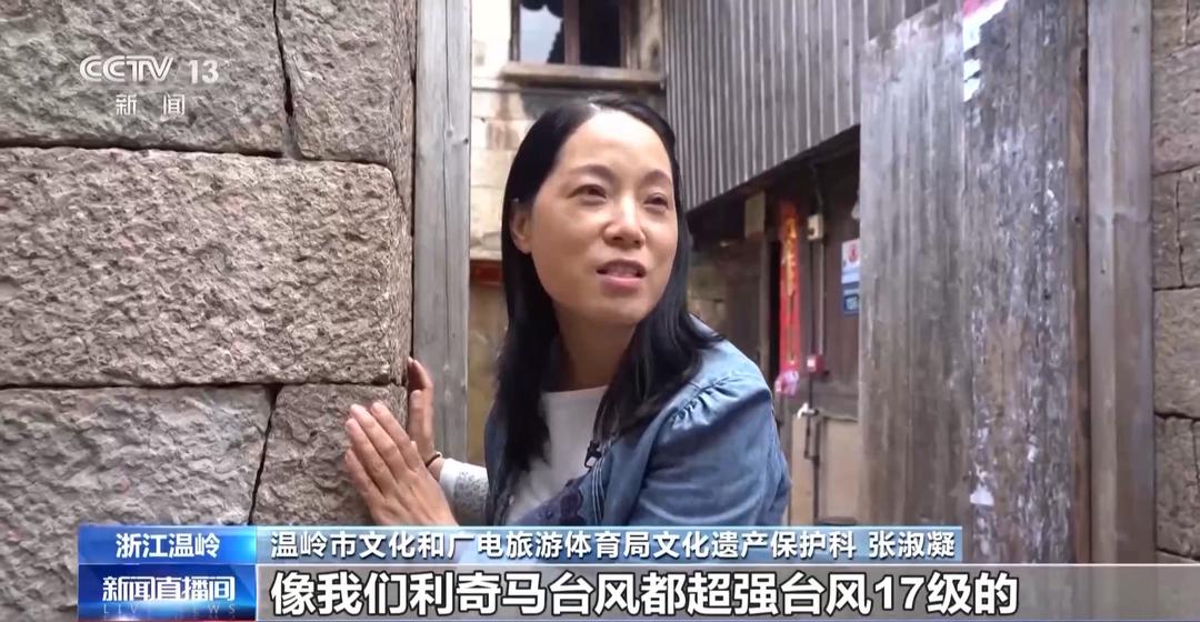 温岭市文化和广电旅游体育局文化遗产保护科 张淑凝:这个民居是我们石塘特有的建筑,就是石屋,它最大的特点就是外墙全是用块石砌筑的,都是花岗岩,在防御台风的时候非常地有优势,因为它比较坚固。像利奇马台风都超强台风17级的,它都岿然不动。