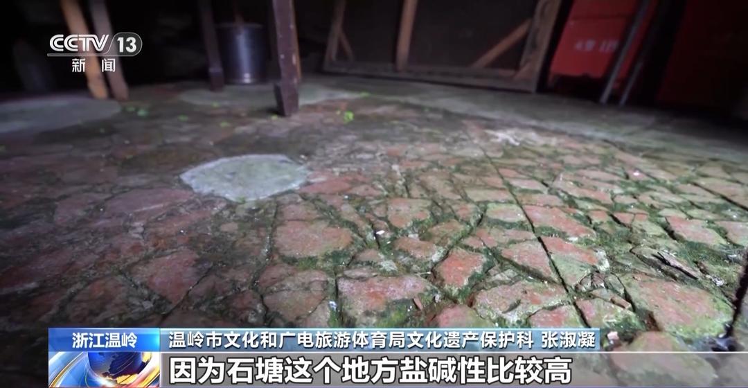 温岭市文化和广电旅游体育局文化遗产保护科 张淑凝:这块它的铺地就比较有特色,在中间相当于甬道这一块,铺了福建的胭脂砖。因为石塘这个地方盐碱性比较高,烧不出这样的砖来,所以它们大部分都是作为装饰来用。