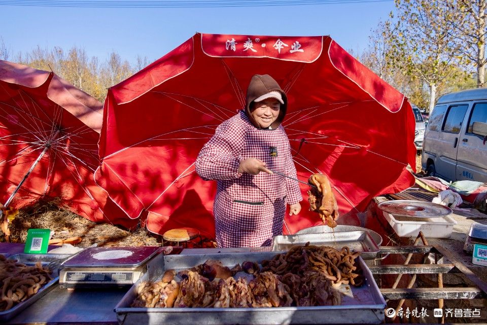 安丘白芬子大集位于安丘市兴安街道白芬子社区,具有浓郁的乡村特色和浓厚的生活气息。集市上商品种类繁多,有新鲜的蔬菜水果、肉类禽蛋、各类干货、农具农资,还有服装、日用品及传统手工艺品等。此外,还有各种小吃摊,如现炒瓜子、火烧年糕、豆腐等,能满足人们的日常所需和味蕾享受 。 (王建春 摄于11月26日)