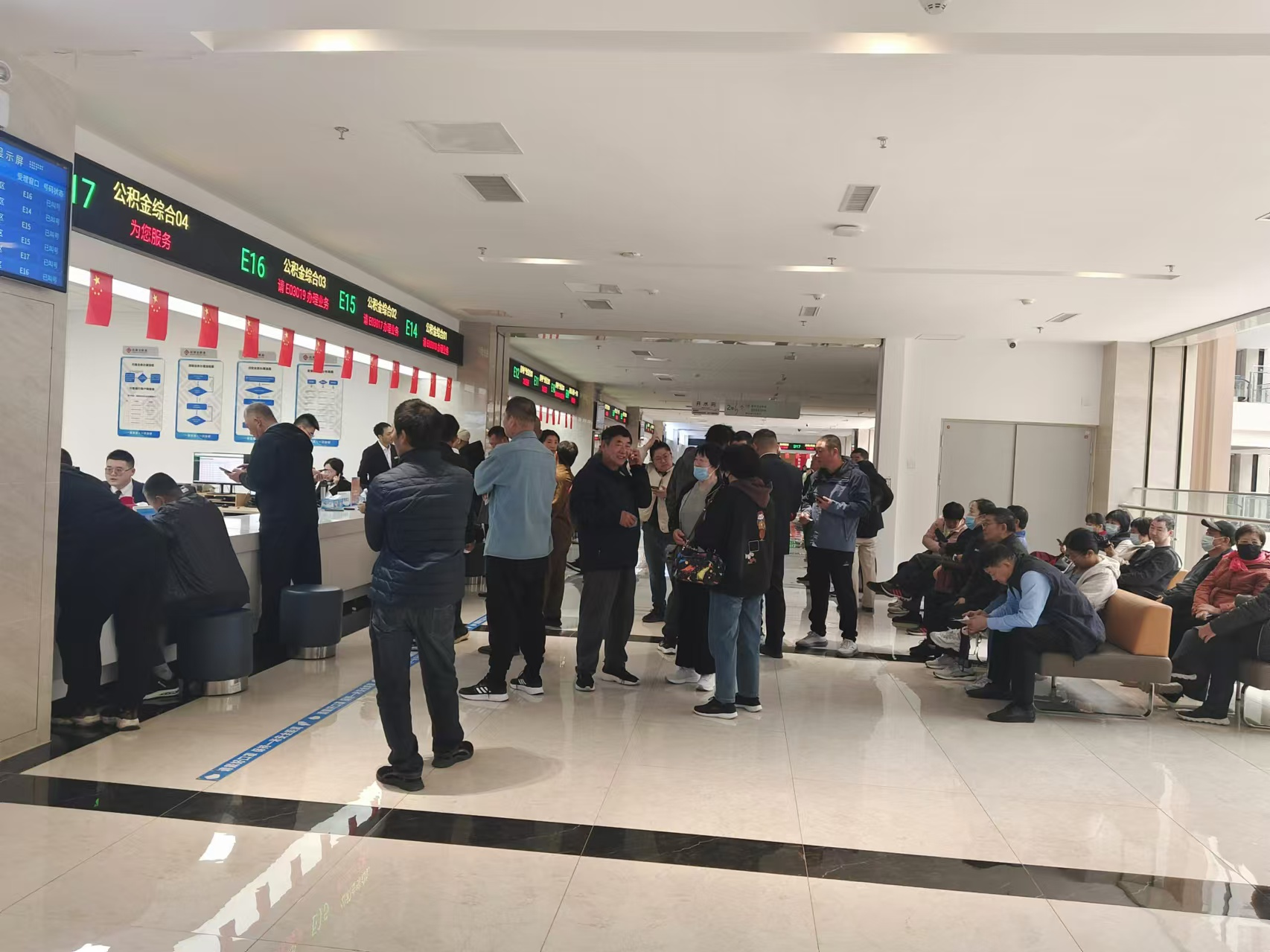 企业老职工来到诸城市政务服务大厅公积金窗口等候办理业务。