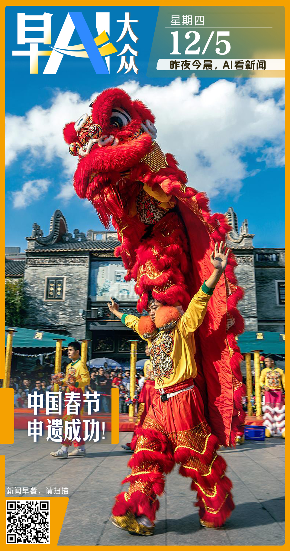 早AI大众|中国春节申遗成功;政府被议会推翻,法国总理将递交辞呈