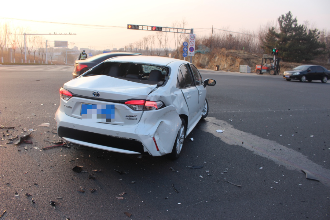 近日,泰安交警岱西大队处理了一起因闯红灯导致三车相撞的事故: