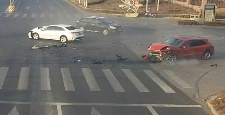 事发这个路口,泰安一车闯红灯,致三车相撞!全责!