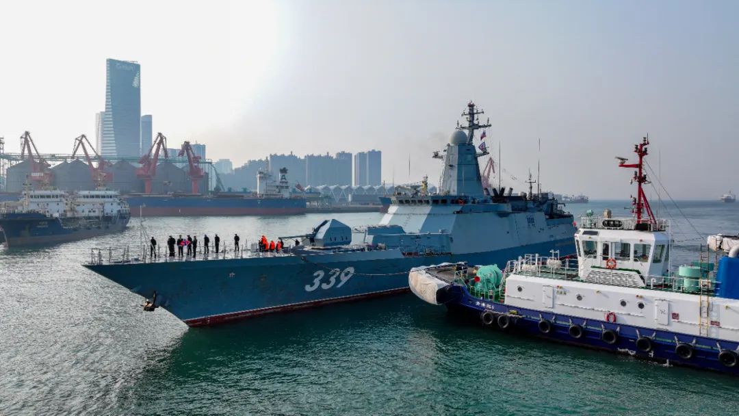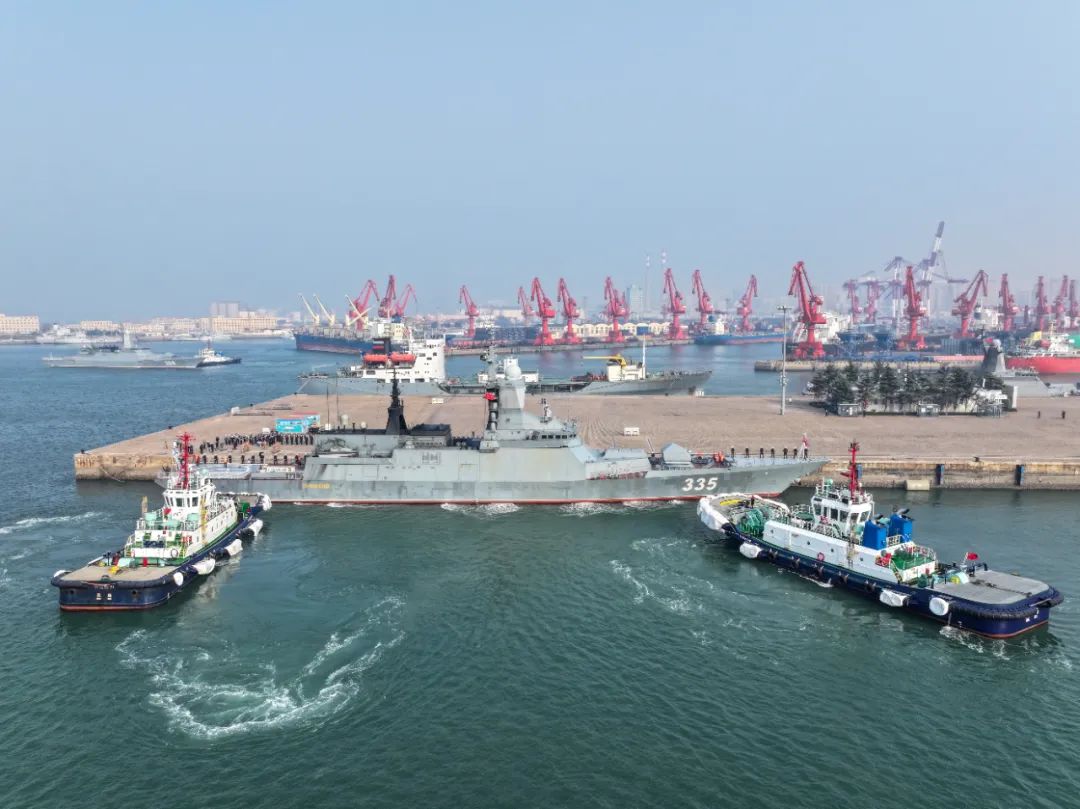 组成的舰艇编队抵达青岛某军港