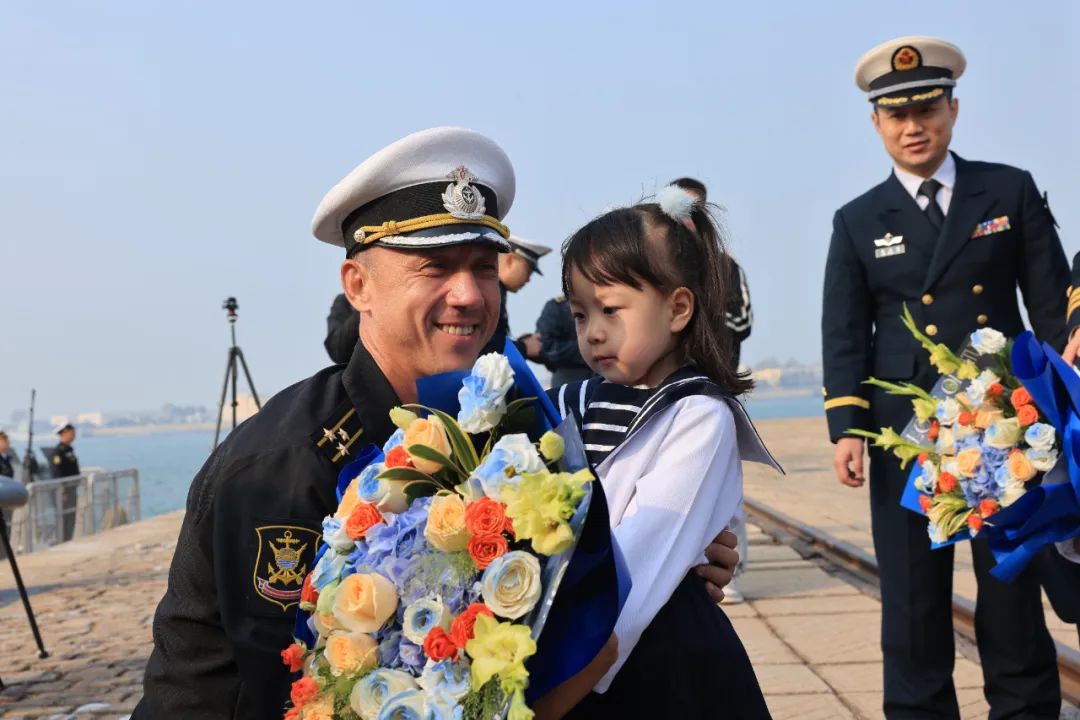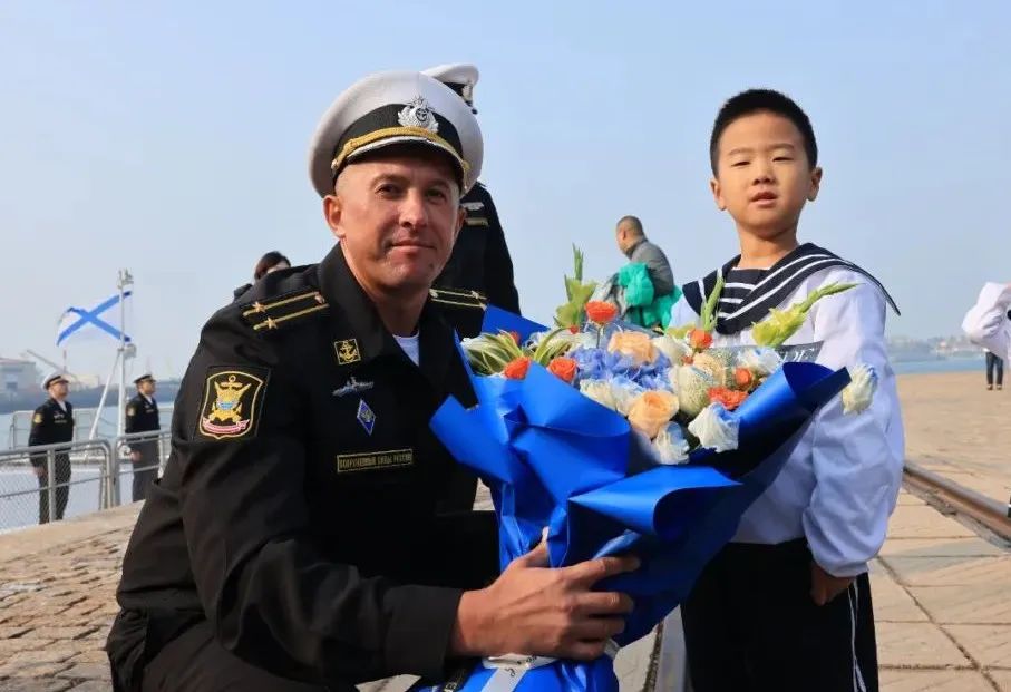 中方儿童向俄方编队、舰艇指挥员