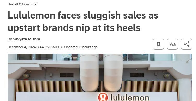 运动品牌Lululemon 面临增长挑战,新兴品牌竞争加剧