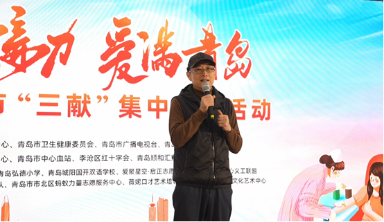 青岛市广播电视台首席主持人邱磊,以青岛广播应急献血志愿服务队爱心大使的身份,满怀激情地向岛城广大爱心人士发出了铿锵有力的公益倡议。他的话语掷地有声,如同一阵阵号角,回荡在活动现场的每一个角落,呼吁大家积极行动起来,踊跃参与无偿献血,以实际行动携手推进社会公益事业的蓬勃发展,为城市文明进步贡献自己的力量。