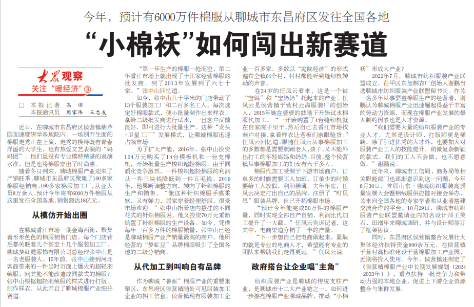 大众日报重点推荐|“小棉袄”如何闯出新赛道