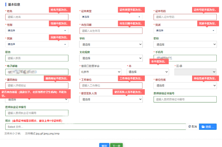 然而,当天上午,记者在中华口腔医学会官网完成“用户注册”,并进入“填写资料”页面时却看到,“医师资格证书编号”和“医师执业证书编号”并不属于必填项。