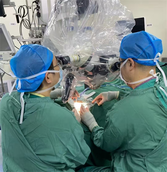 经充分的术前准备,在胜利油田中心医院脑科医院副院长宗强的指导下,在麻醉手术科副主任刘克的全程麻醉监护下,神经外科一病区副主任张凯、神经外科二病区主治医师刘贻哲为患者施行了双侧颈深淋巴管——静脉吻合术,这是东营市独立开展的第一例阿尔茨海默病显微手术治疗。由于手术部位解剖结构复杂且淋巴管直径仅有0.2毫米左右,所以手术全程在高倍手术显微镜下操作,术中将纤细如发的颈深淋巴管、颈深淋巴结与静脉进行一一吻合,历时5个小时,手术顺利完成。