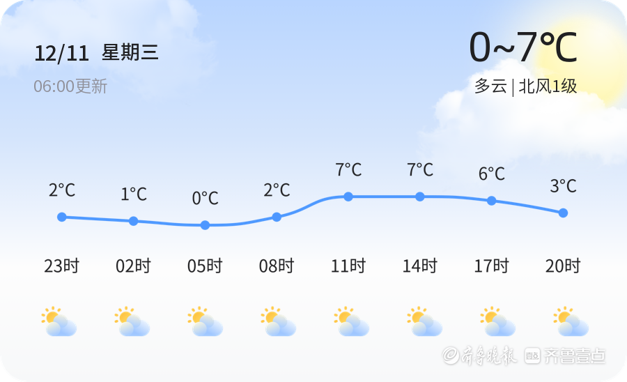 今天是2024年12月11日,农历十一月十一,济南的天气以多云为主,气温在0度到7度之间,北风1级,相对湿度64%,空气质量不佳,PM2.5指数达到140。济南各区天气情况大致相同,均以多云天气为主,市民出行需注意防寒保暖。