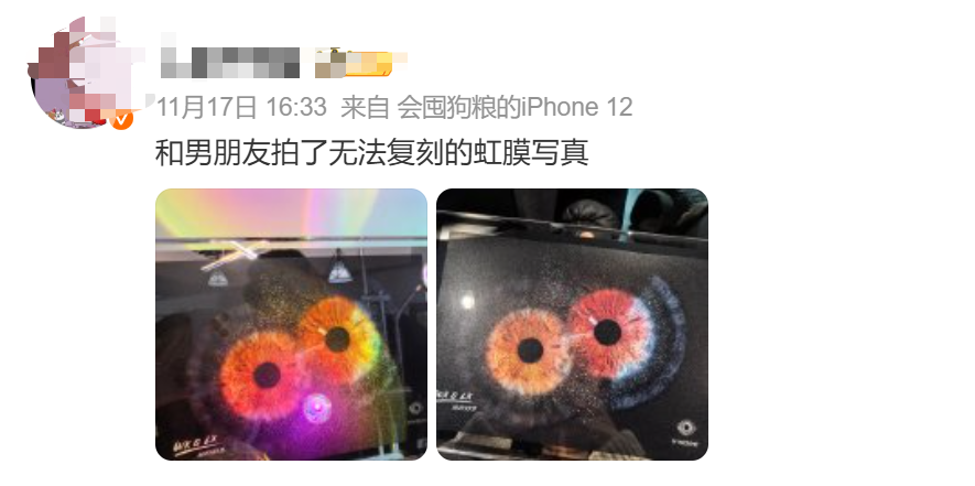 “当然,通过虹膜写真去制作一些小文创,比如钥匙链、手机挂件,或许能延长一些网红热度,但也不会长久。”张书乐表示。