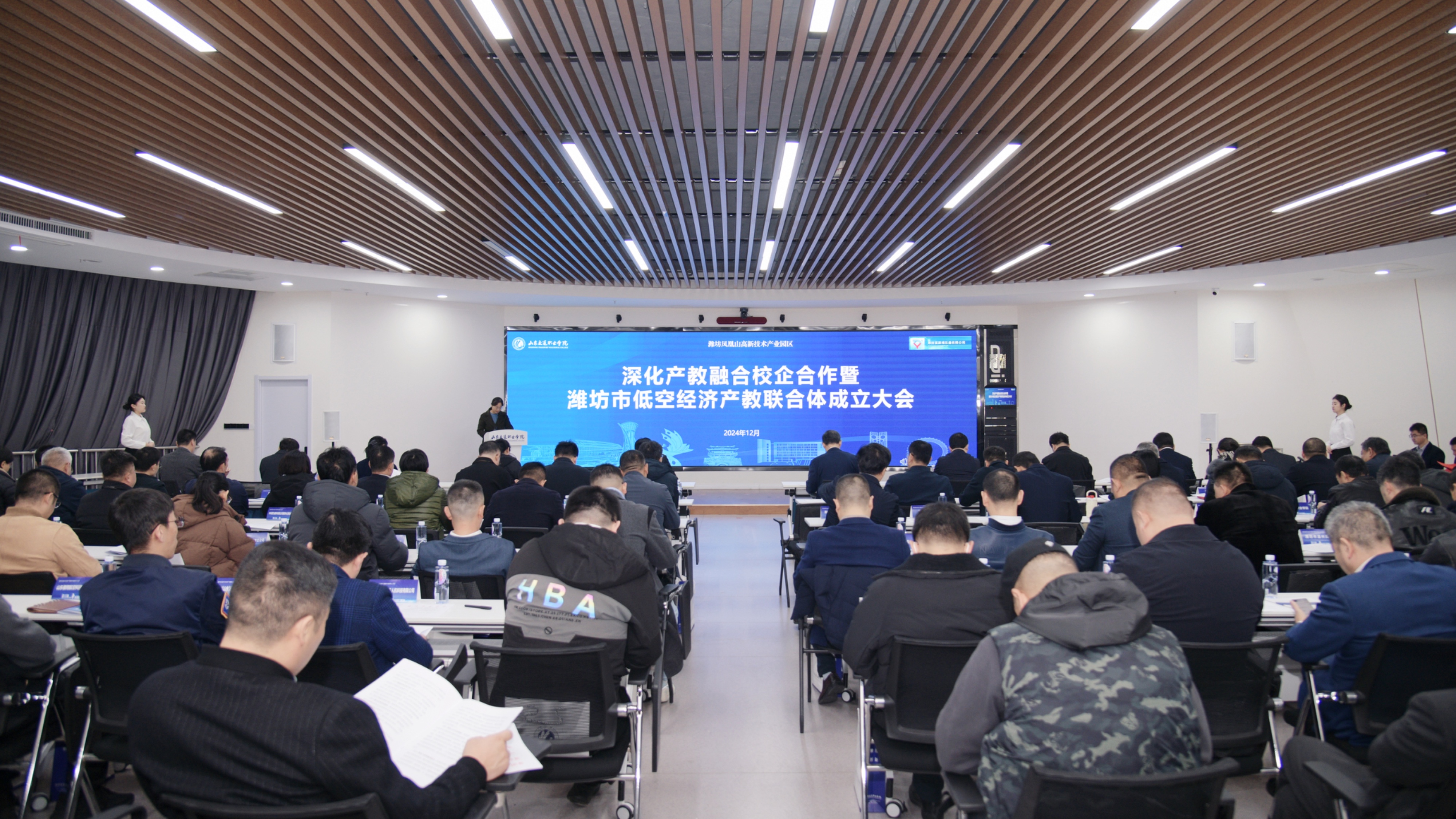 12月6日,深化产教融合校企合作暨潍坊市低空经济产教联合体成立大会在山东交通职业学院举行。潍坊市委统战部,潍坊市工商联、产教融合研究院、教育局、科技局、交通局、坊子区人民政府,驻潍高校及执常委企业代表等80余人参会。