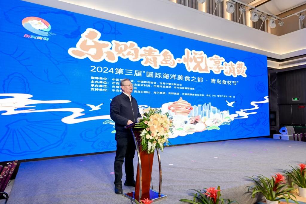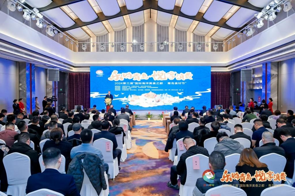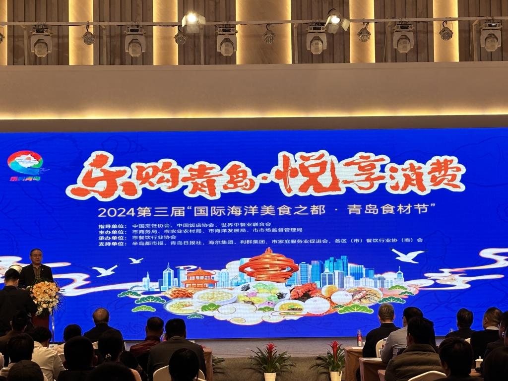 12月12日下午,由青岛市商务局、市农业农村局、市海洋发展局、市市场监督管理局主办的第三届“国际海洋美食之都·青岛食材节”活动暨食材展在中华老字号鑫复盛礼记酒店举行。