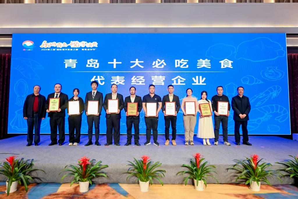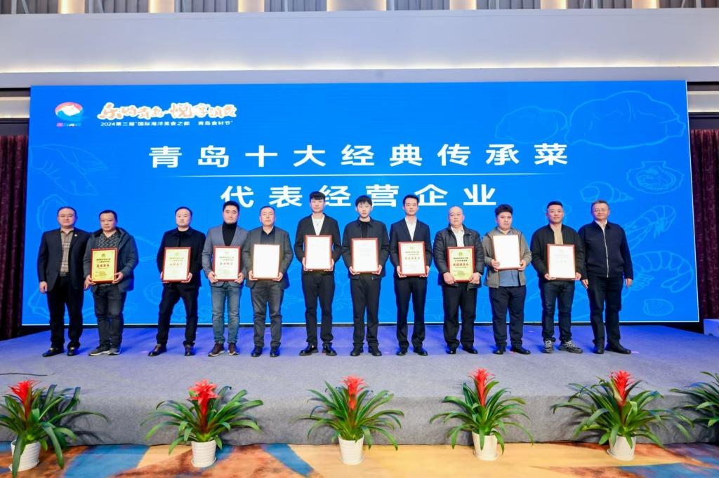 现场发布10种“优选青岛地域食材”、10种“优选青岛水产品”、“青岛十大必吃美食”以及“青岛十大经典传承菜”,并为获奖代表企业授牌。